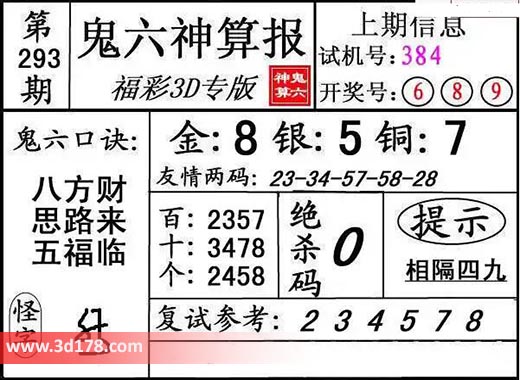 3d第23293期鬼六神算报为您推荐鬼六口诀: