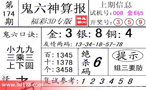 3d第2014174期鬼六神算报: