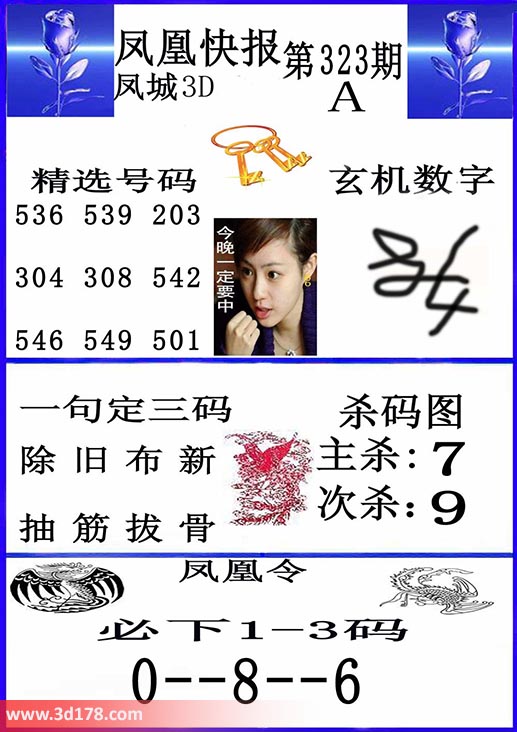 福彩3d凤凰快报图第23323期精选号码推荐: