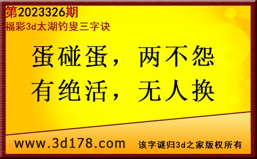 3d第2023326期太湖字谜:蛋碰蛋,两不怨,有绝活,无人换