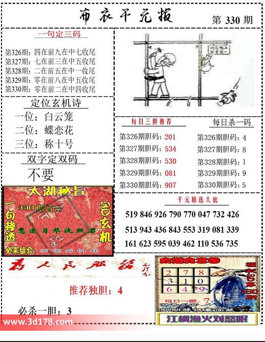 福彩3d第2023330期布衣千元报图详情分析如下: