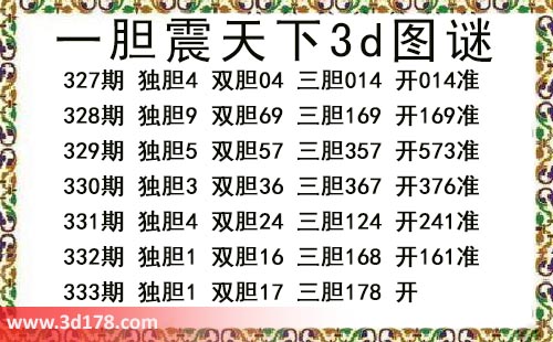 一胆震天下三胆图库由3d之家3d图库频道原创,仅供彩民参考,温馨提供。