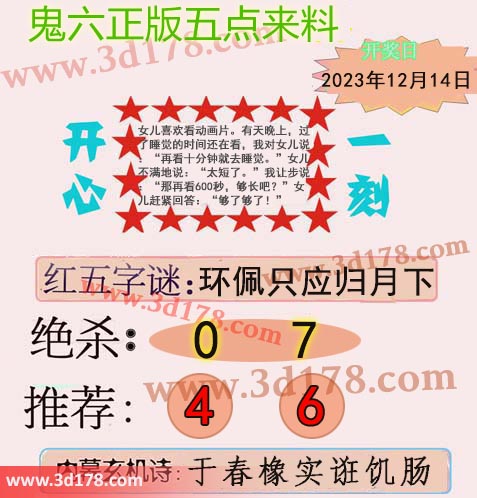 福彩3d第2023334期鬼六五点来料: