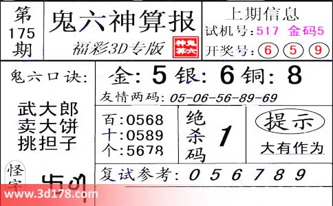 3d第2014175期鬼六神算报: