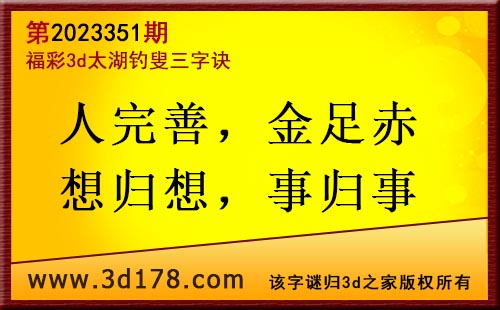 3d第2023351期太湖字谜:人完善,金足赤,想归想,事归事
