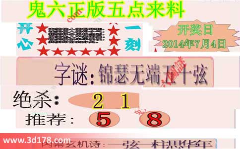 3d第2014177期鬼六五点来料: