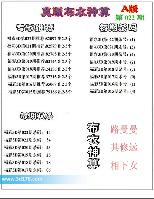 3d之家布衣图库之布衣神算图第2024022期详解: