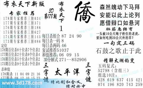 该布衣图库由福彩3D之家3D图库频道原创,仅供彩民参考,温馨提供。