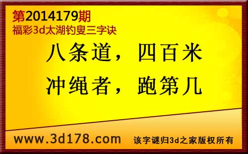 八条道:明码推荐8,解8有5; 四百米:明码推荐4,解4防0; 冲绳者:冲绳是一个地名,解7有9; 跑第几:几有2划,看1有2; 五码复式:01478(含组三) 组选10注:124 147 145 179 029 028 458 016 156 347
