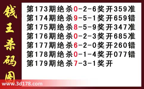 第173期绝杀0-2-6奖开359准第174期绝杀9-5-1奖开659错第175期绝杀8-5-9奖开347准第176期绝杀0-2-3奖开685准第177期绝杀6-2-0奖开260错第178期绝杀0-1-4奖开077错第179期绝杀7-3-1奖开