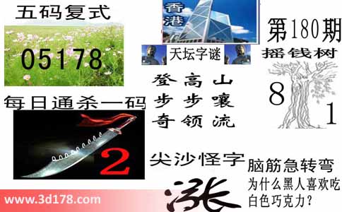3d第2014180期香港彩报图推荐: 天坛字谜:登高山,步步嚷,奇领流摇钱树:8 1五码复式:05178每日通杀一码:2尖沙怪字:涨 该香港彩报由福彩3D之家3D图库频道原创,仅供彩民参考,温馨提供。