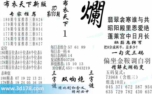 3d第2014180期布衣天下新版: