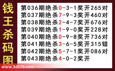近期3d钱王杀码具体详情: