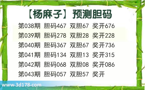 福彩3d第2024043期杨麻子胆码图: