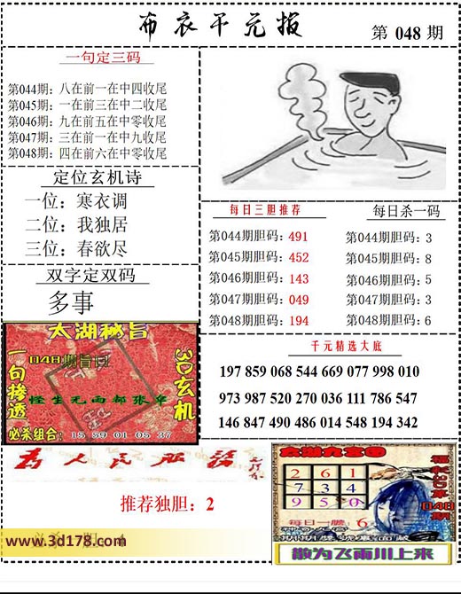 福彩3d第2024048期布衣千元报图详情分析如下: