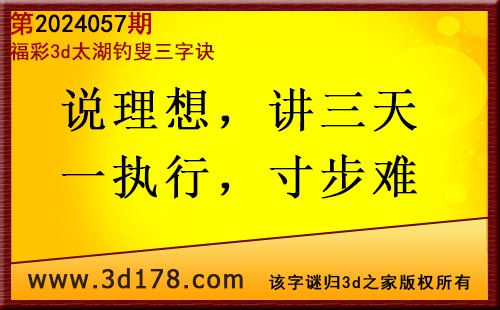 3d第2024057期太湖字谜:说理想,讲三天,一执行,寸步难