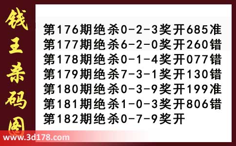 第176期绝杀0-2-3奖开685准第177期绝杀6-2-0奖开260错第178期绝杀0-1-4奖开077错第179期绝杀7-3-1奖开130错第180期绝杀0-3-9奖开199准第181期绝杀1-0-3奖开806错第182期绝杀0-7-9奖开
