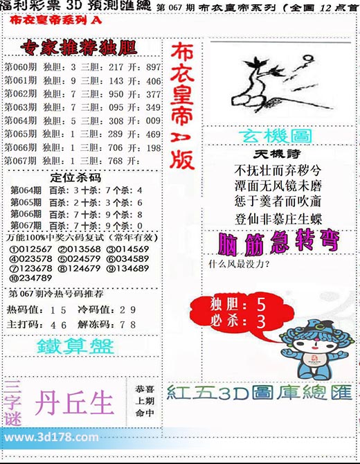 福彩3d第2024067期布衣皇帝布衣专家独家推荐: