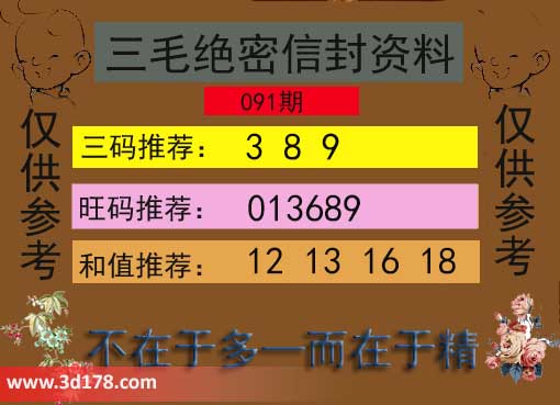 福彩3d第24091期三毛绝密信封资料图详解: