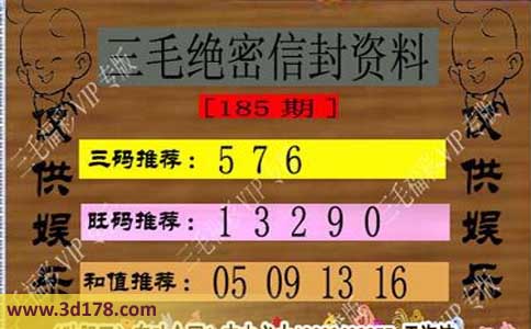 3d第2014185期三毛绝密信封资料图详解: 三码推荐:576旺码推荐:13290 和值推荐:05 09 13 16