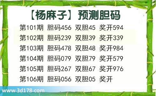 福彩3d第2024106期杨麻子胆码图: