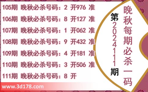 110期 晚秋必杀号码:3 开506 准