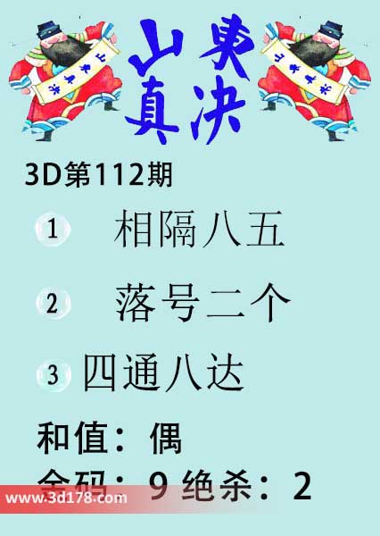 福彩3d第2024112期山东真诀图如下所示: