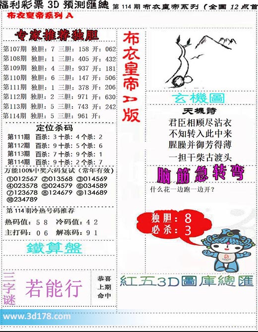 福彩3d第2024114期布衣皇帝布衣专家独家推荐: