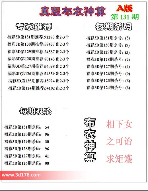 3d之家布衣图库之布衣神算图第2024131期详解: