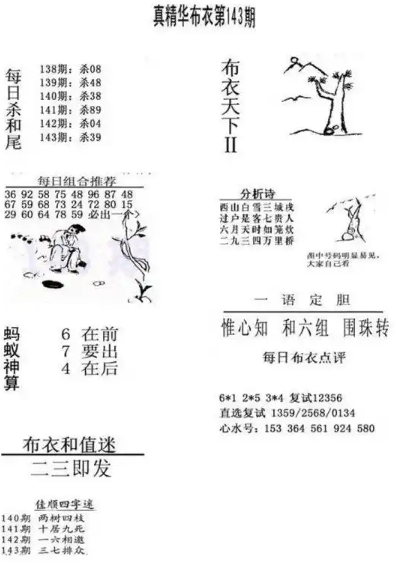 真精华布衣第2024143期: