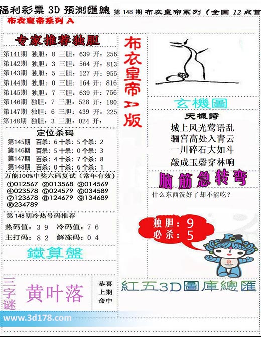 福彩3d第2024148期布衣皇帝布衣专家独家推荐: