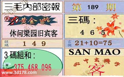 3d第2014189期三毛内部密报图:
