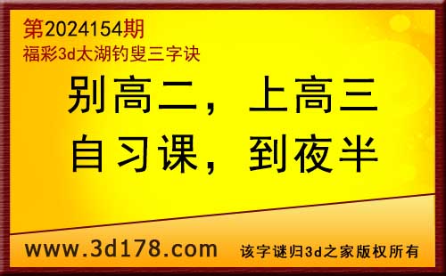3d第2024154期太湖图库解字谜:别高二,上高三,自习课,到夜半