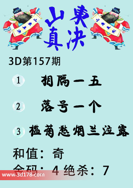 福彩3d第2024156期山东真诀图如下所示: