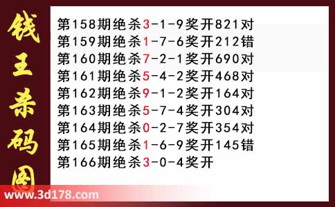 第165期绝杀1-6-9奖开145错第166期绝杀3-0-4奖开该钱王杀码图由3d之家3d图库原创,仅供彩民参考,温馨提供。