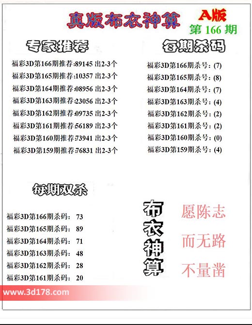 3d之家布衣图库之布衣神算图第2024166期详解: