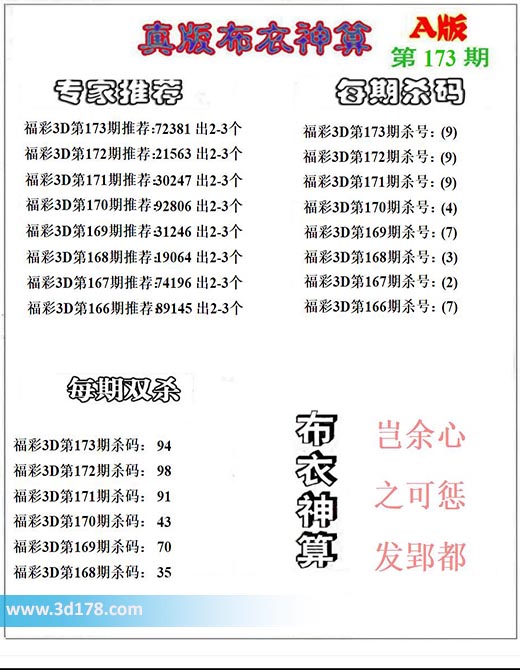 3d之家布衣图库之布衣神算图第2024173期详解:
