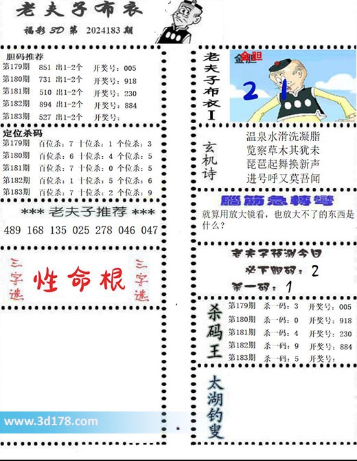 福彩3d第2024183期老夫子布衣图详情: