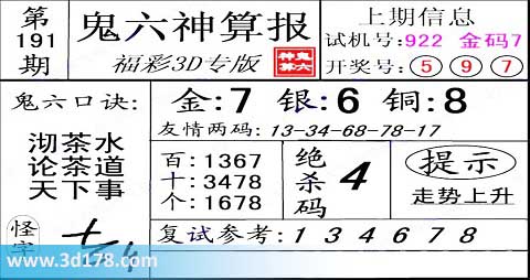 3d第2014191期鬼六神算报: