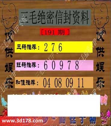 3d第2014191期三毛绝密信封资料图详解: 三码推荐:276