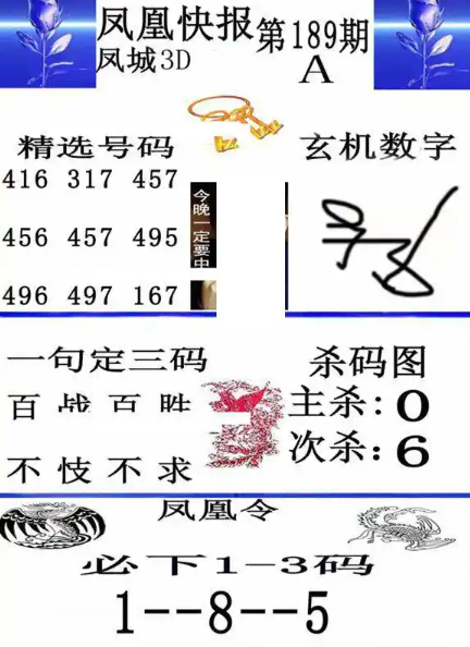 凤凰令:必下1-3码 1--8--5