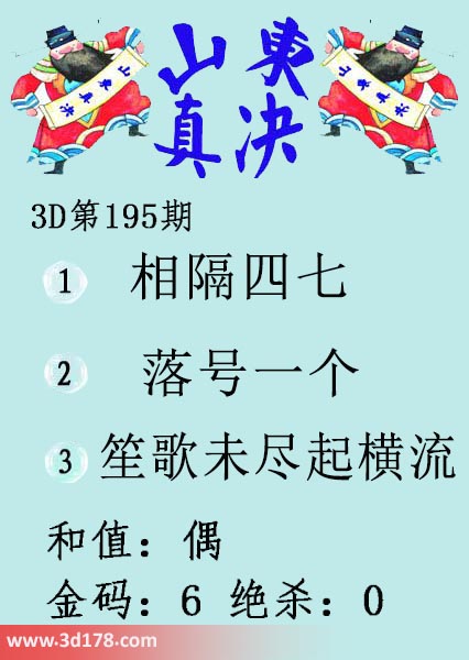 福彩3d第2024195期山东真诀图如下所示: