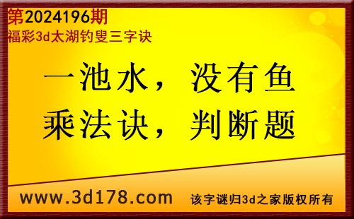 3d第2024196期太湖图库解字谜:一池水,没有鱼,乘法诀,判断题