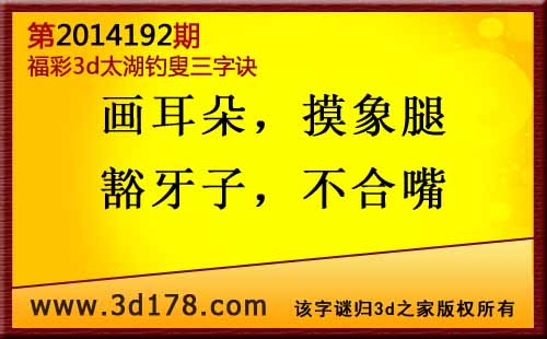 3d第2014192期太湖图库解字谜: