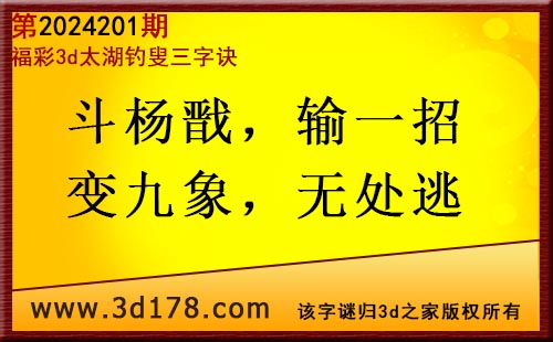 3d第2024201期太湖图库解字谜:斗杨戬,输一招,变九象,无处逃
