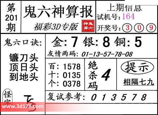 3d第24201期鬼六神算报为您推荐鬼六口诀: