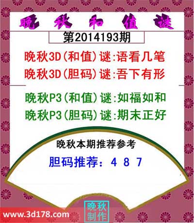 晚秋3D(和值)谜:语看几笔
