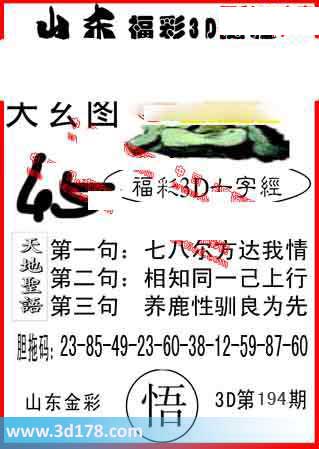 3d第2014194期山东天玄图详解: