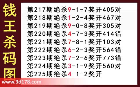 近期3d钱王杀码具体详情: