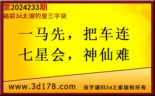 3d第2024233期太湖图库解字谜:一马先,把车连,七星会,神仙难